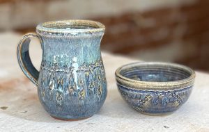 Darlene Beal is new to our studio sale but has been making pottery for quite a while now. Her work is thoughtful and eclectic, sometimes using real leaf textures and other textures as well as interesting glaze combinations to decorate her wares.