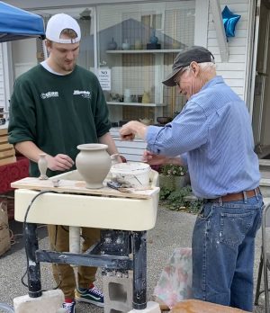 Peter Grams will be with us in spirit, but unfortunately he passed on this summer. He had been a regular at our studio sales, demonstrating on the potter’s wheel and selling his pottery since we first started having them 31 years ago.